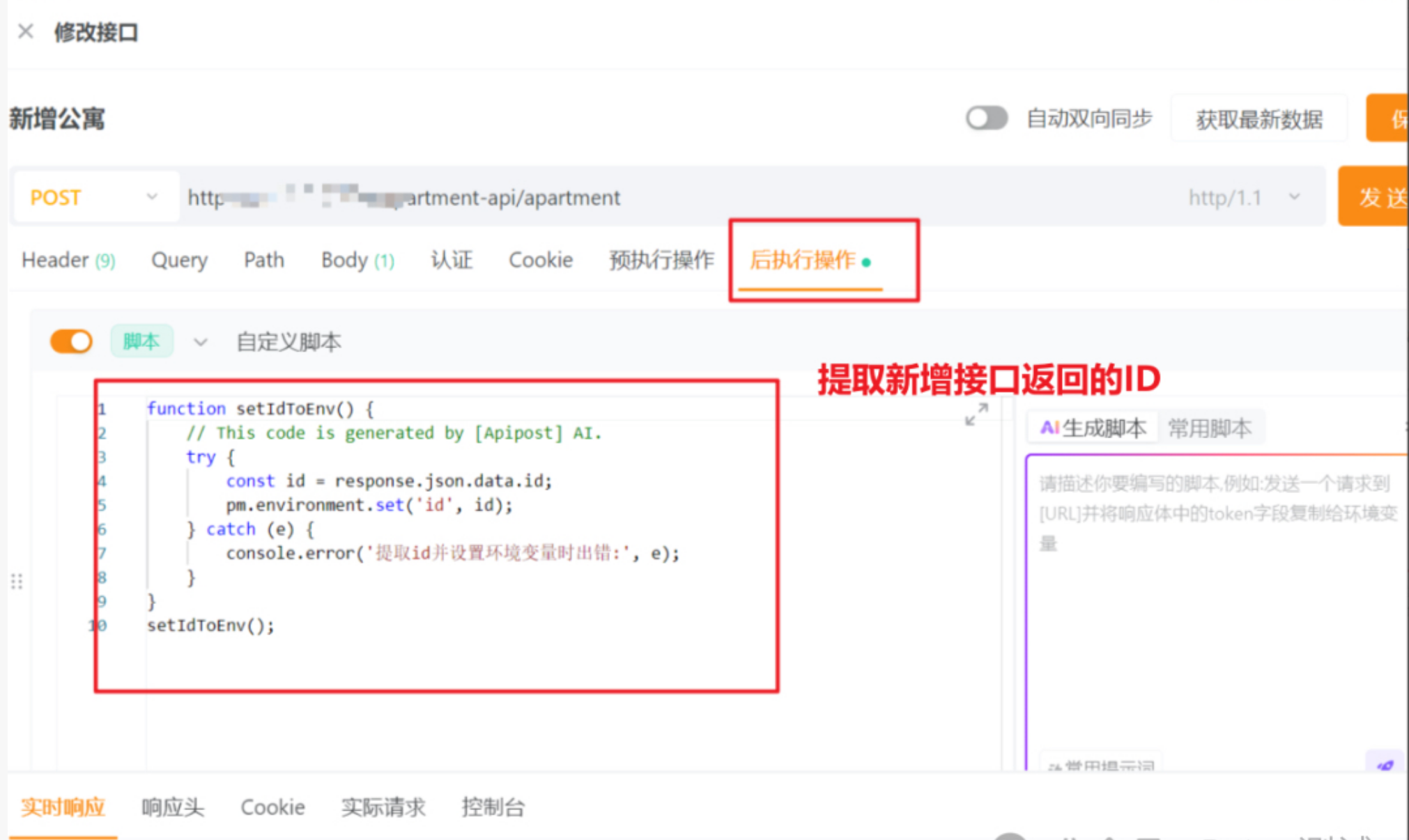 步骤2:提取新增公寓接口的响应数据id,并为后续接口设置环境变量