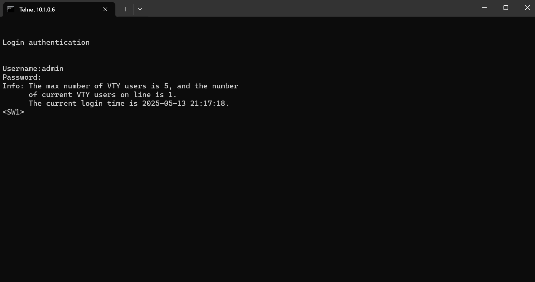 配置IP后请自行测试是否互通,本次实验仅测试telnet登录情况。