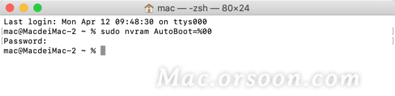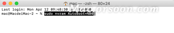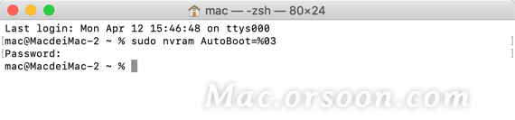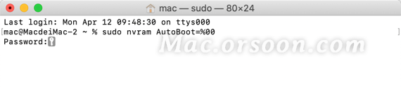 如果要恢复自动开机功能,命令改为 sudo nvram AutoBoot=%03 即可。