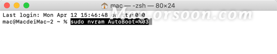sudo nvram AutoBoot=%03