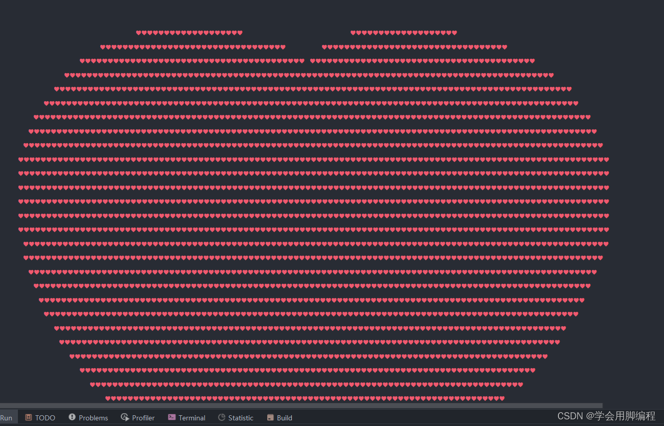 这篇博客分享了一段使用简单循环语句编写的Java代码,该代码能在控制台绘制出爱心图案。作者指出,代码中的'♥'字符可以替换,且提供了代码运行时每行之间暂停的实现方式,为读者展示了一种创意编程技巧。