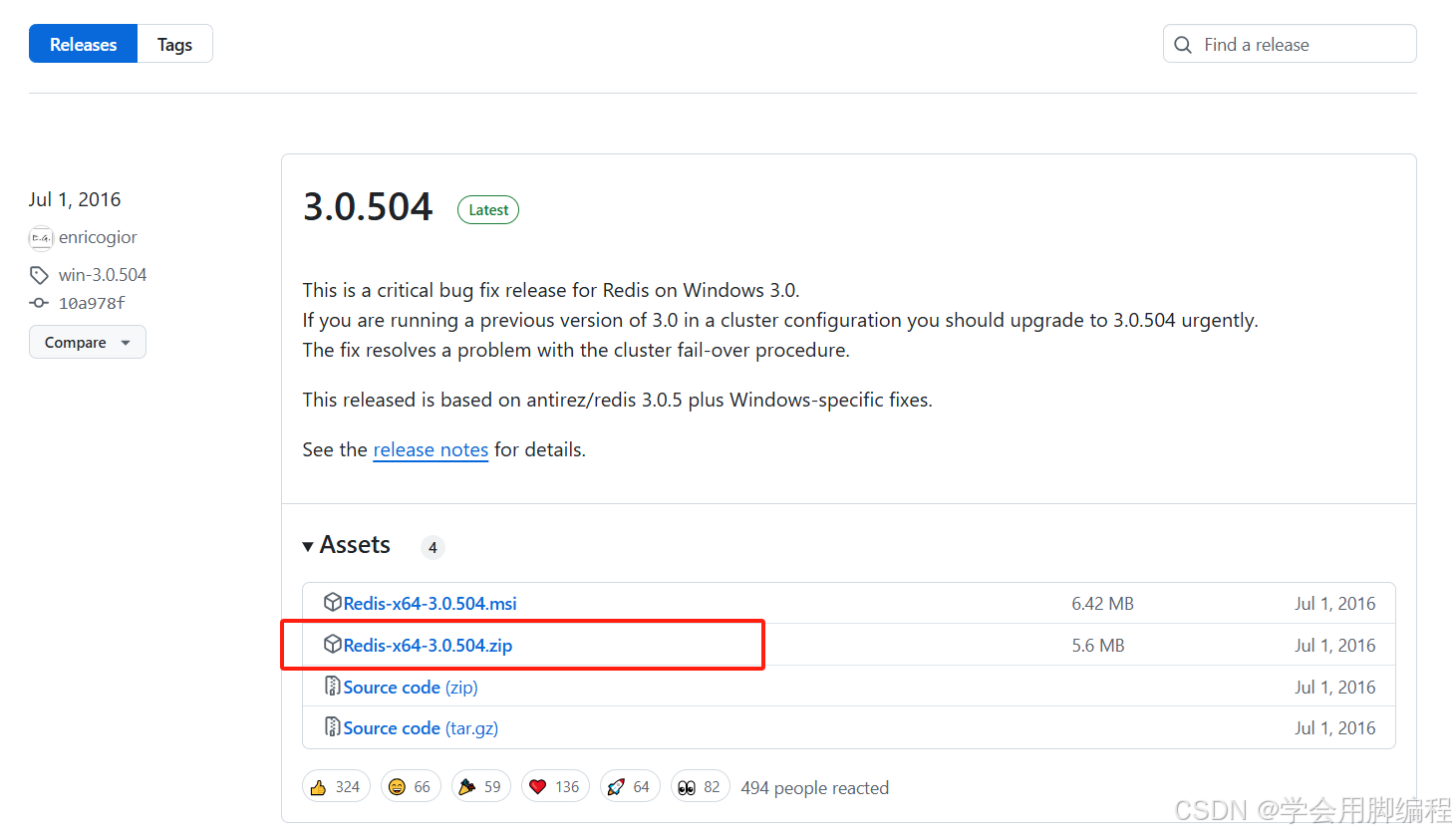 redis下载地址 Releases · microsoftarchive/redis · GitHub ; 下载Redis-x64-3.2.100.zip