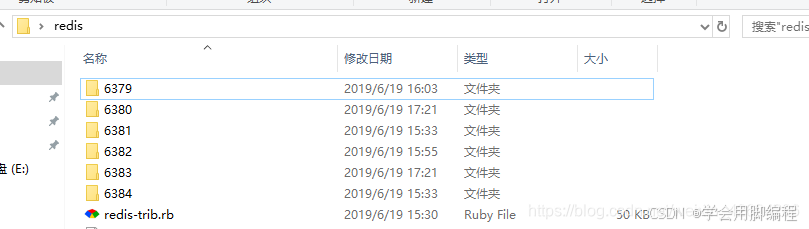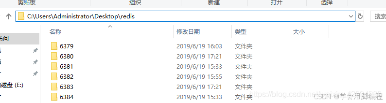 把 redis 解压到桌面,(也可以在其他盘,怎么方便怎么来)再复制出 5 份,配置 三主三从集群。 由于 redis 默认端口号为 6379,那么其它5份的端口可以为6380,6381,6382,6383,6384。 并且把目改成端口号命名。如图所示: