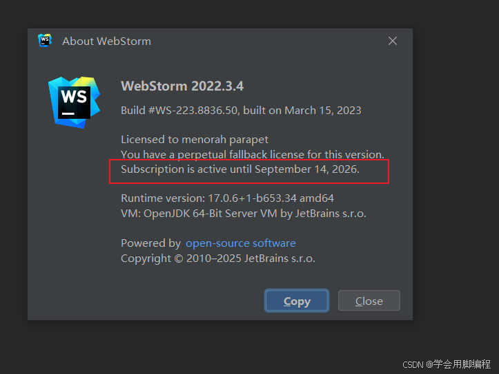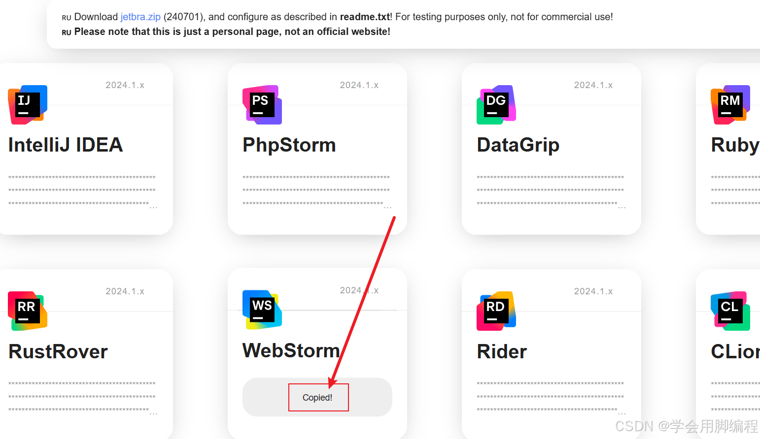 注意:这种方式不局限于WebStorm,还可以用于jetbra公司其他开发工具软件,(IDEA,PyCharm,PhpStorm...)根据需要按照上面步骤,照猫画虎既可以了