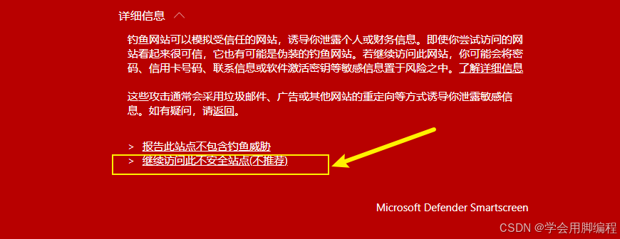 进入后有的小伙伴可能出现红色网站警告,不必担心,继续访问即可