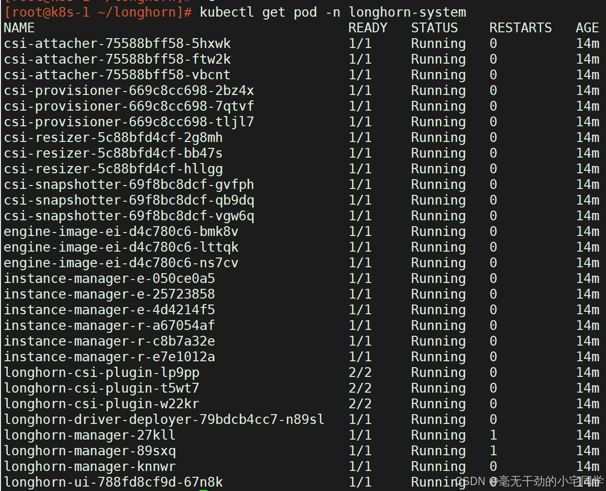 kubectl apply -f longhorn.yaml #过程较慢1-3分钟我的配置2核4G