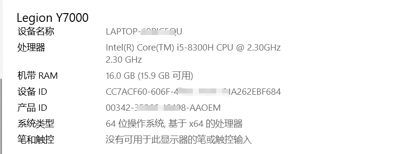 电脑:联想拯救者Y7000(i5-8300H + GTX 1050Ti)