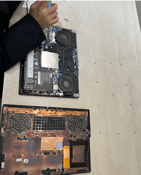 取下电池 (如果可拆卸): 老款 Y7000 可能电池可拆卸,新款多是内置电池。如果是内置电池,确保电源适配器已拔掉即可。