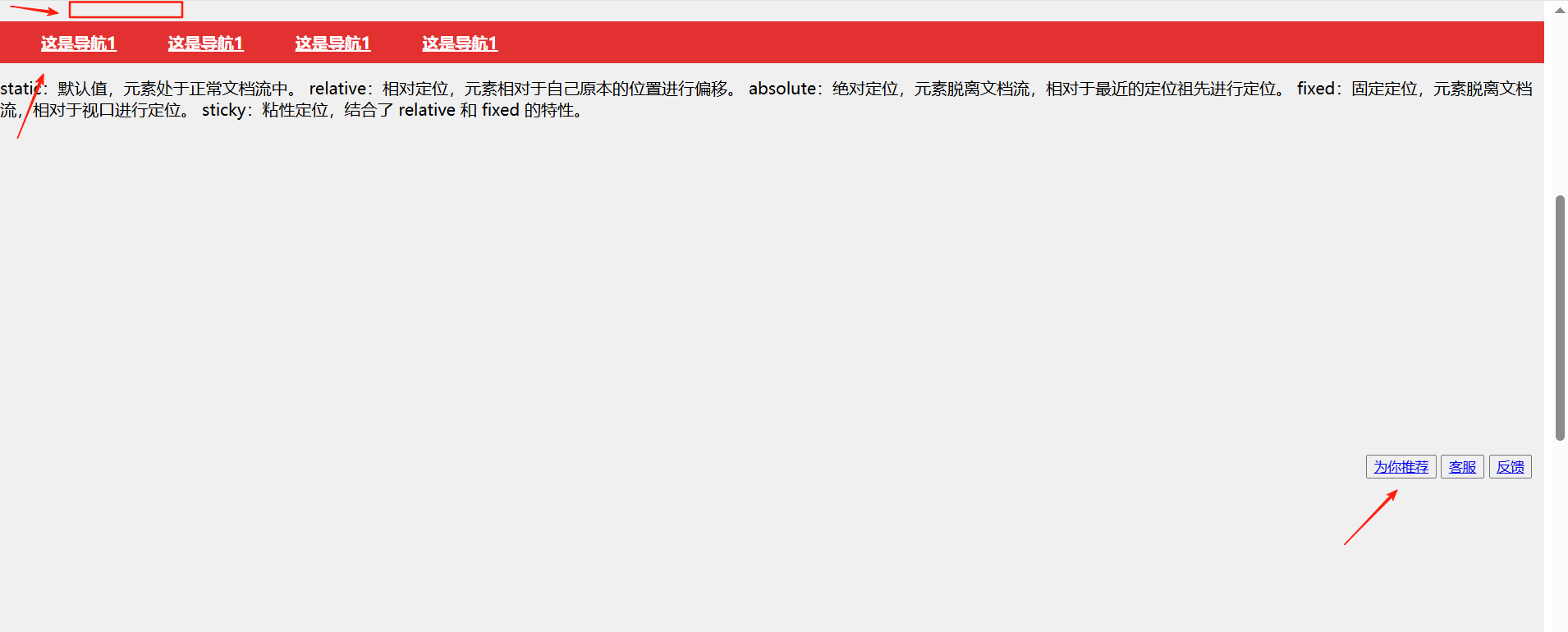 比如:浮动菜单、头部导航、悬浮按钮、标题栏、分类导航等。下面的网页就用到了很多的定位。