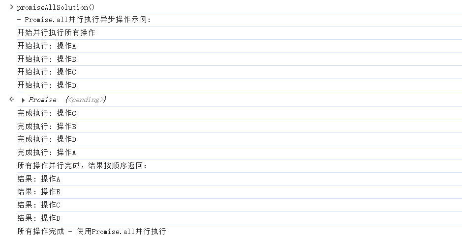 console.log('所有操作完成 - 使用Promise.all并行执行');