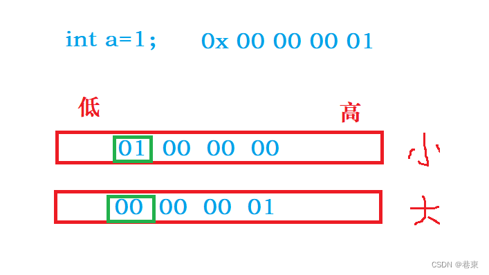 小端(存储)模式,是指数据的低位保存在内存的低地址中,而数据的高位,,保存在内存的高地