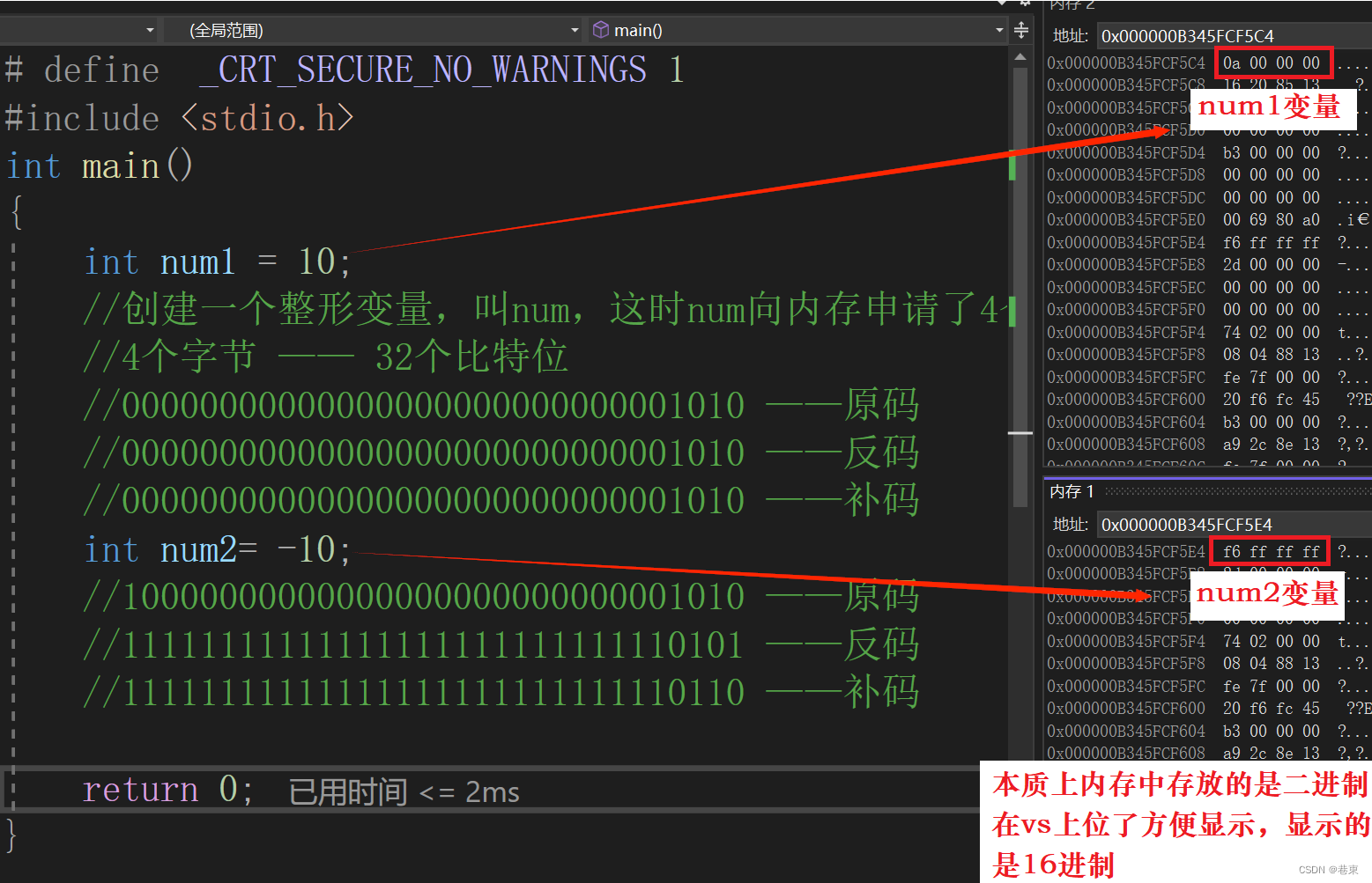 那么数据在所开辟的内存中到底是怎么存储的呢?