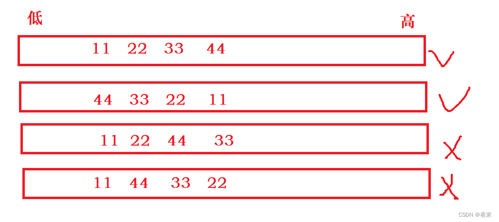 注:字节序 -- 是以字节为单位,讨论存储顺序的