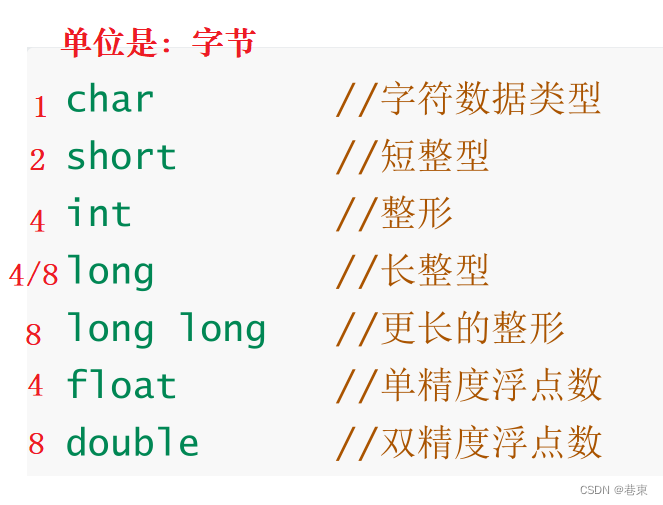 前面我们学过基本的内置类型,并且关注他们在内存中所占的大小比如说: