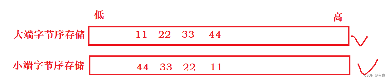 大端(存储)模式,是指数据的低位保存在内存的高地址中,而数据的高位,保存在内存的低地址