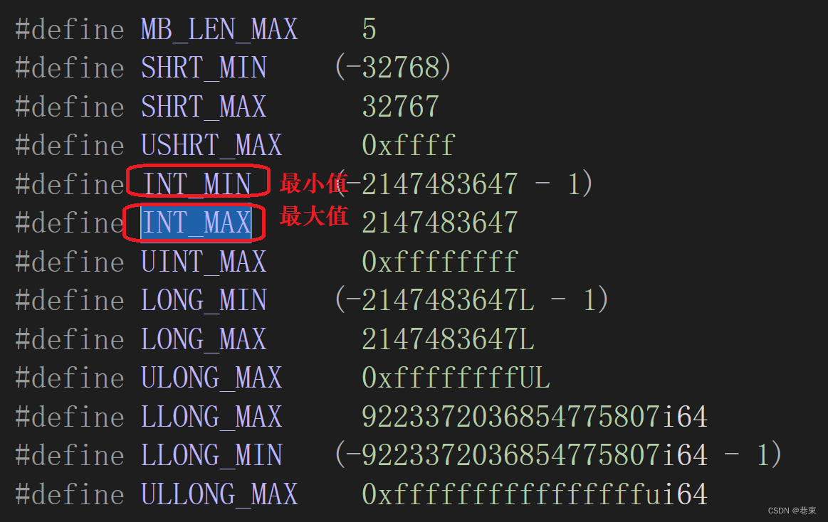 有一个头文件<limits.h>在这个头文件中能观察到数据类型在内存中的最大值和最小值