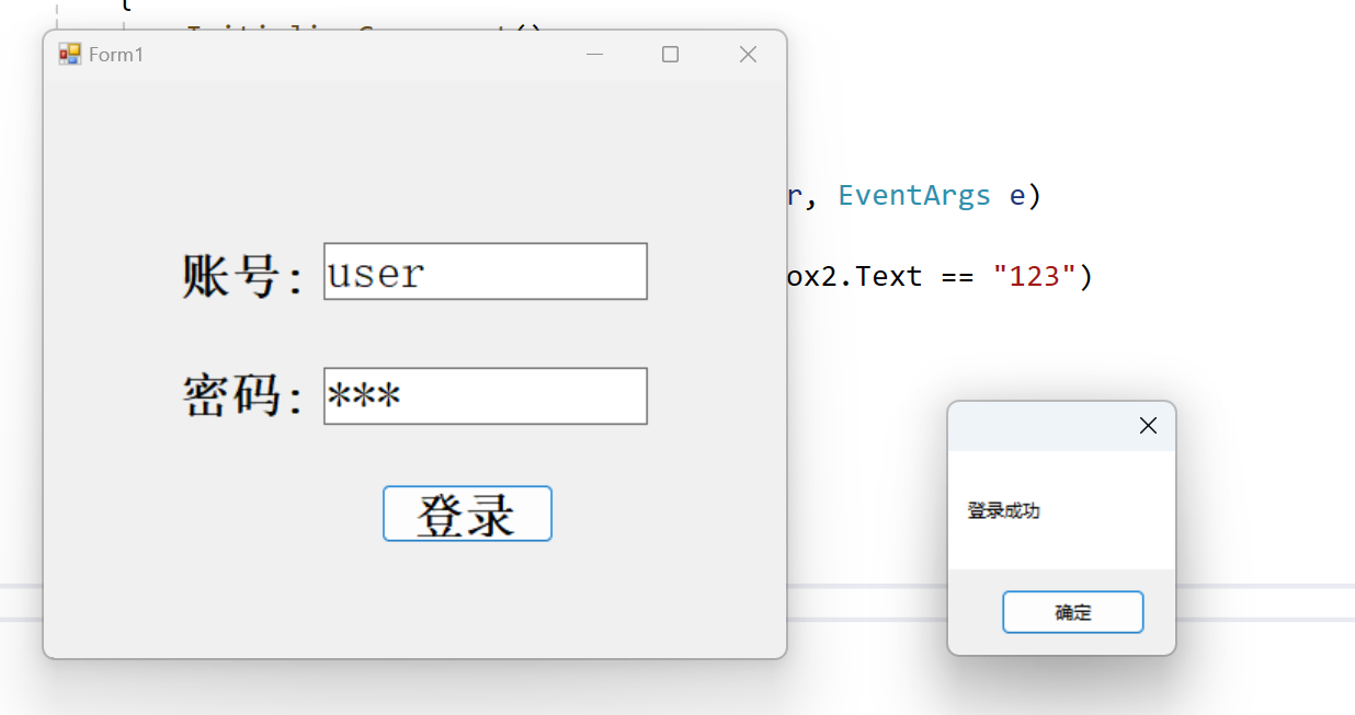MessageBox.Show("登录成功");
