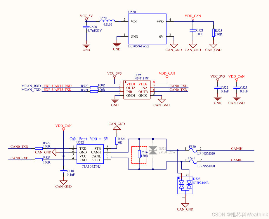 为了确保系统的可靠性,尤其是在高电压、高噪声的环境中,CAN接口的电气隔离设计尤为重要。隔离设计可以有效地避免以下问题: