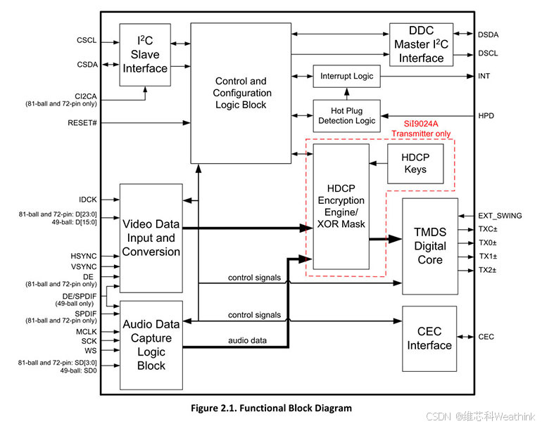 ●时序信号处理:确保 RGB 信号的时序符合 HDMI 标准,通过引脚或寄存器配置 RGB 时序参数(如分辨率、刷新率等)。