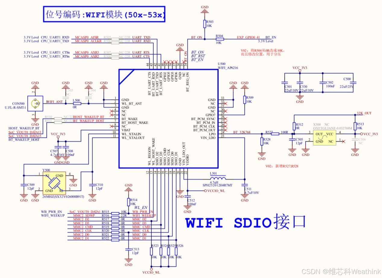 ●MMC连接:将 Wi-Fi 模块的 SDIO接口连接到 AM62x 的相应 MMC引脚。常见引脚包括: