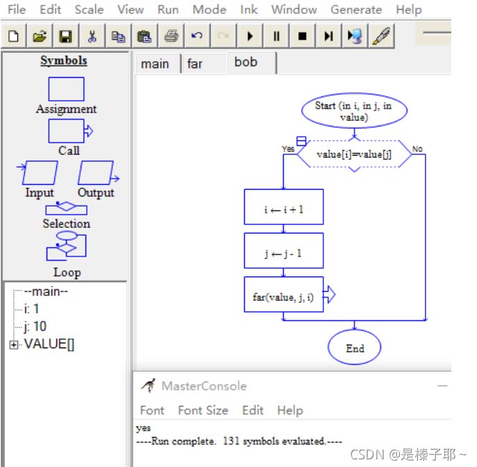 英文中,有一类字符串,将其所有字符倒过来后和原来一样,这种字符串被称为“回文”。如121、abcba都是回文,abA、abad都不是回文。请你使用Raptor设计程序,运行后可以接受用户输入一个不超过10个字符的字符串(提示:可考虑让用户一个个字符输入,输入你规定的某特定字符即代表输入完毕),并通过你的程序判断该是否是回文,是则输出yes,否则输出no。要求完全应用数组解决问题。