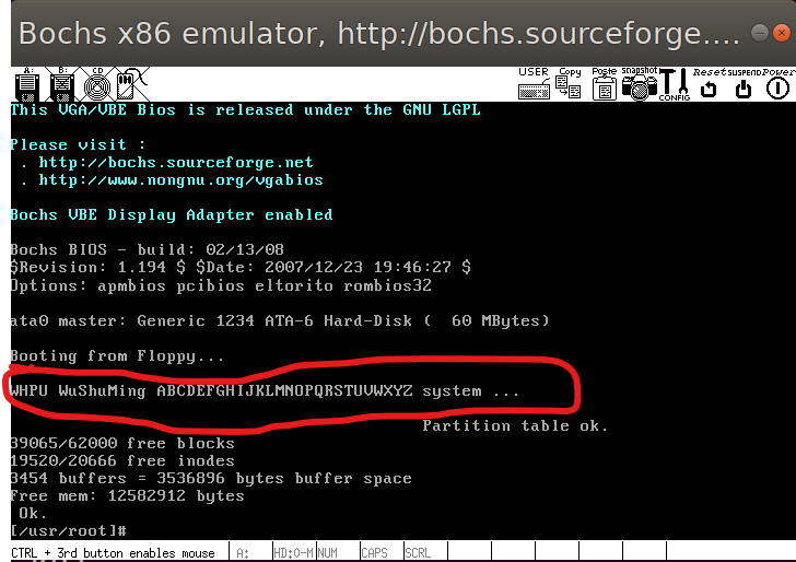 - bootsect.s 能在屏幕上打印一段提示信息“XXX is booting…”,其中 XXX 是你给自己的操作系统起的名字,例如 LZJos、Sunix 等(可以上论坛上秀秀谁的 OS 名字最帅,也可以显示一个特色 logo,以表示自己操作系统的与众不同。)
