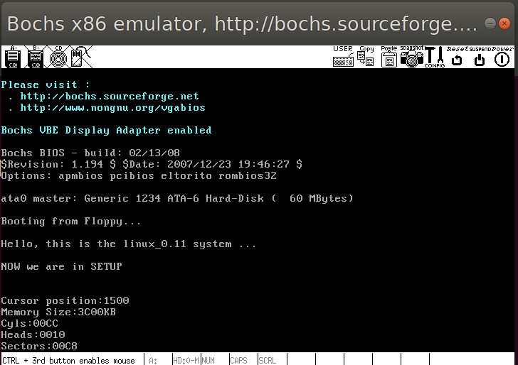 - setup.s 不再加载 Linux 内核,保持上述信息显示在屏幕上即可。