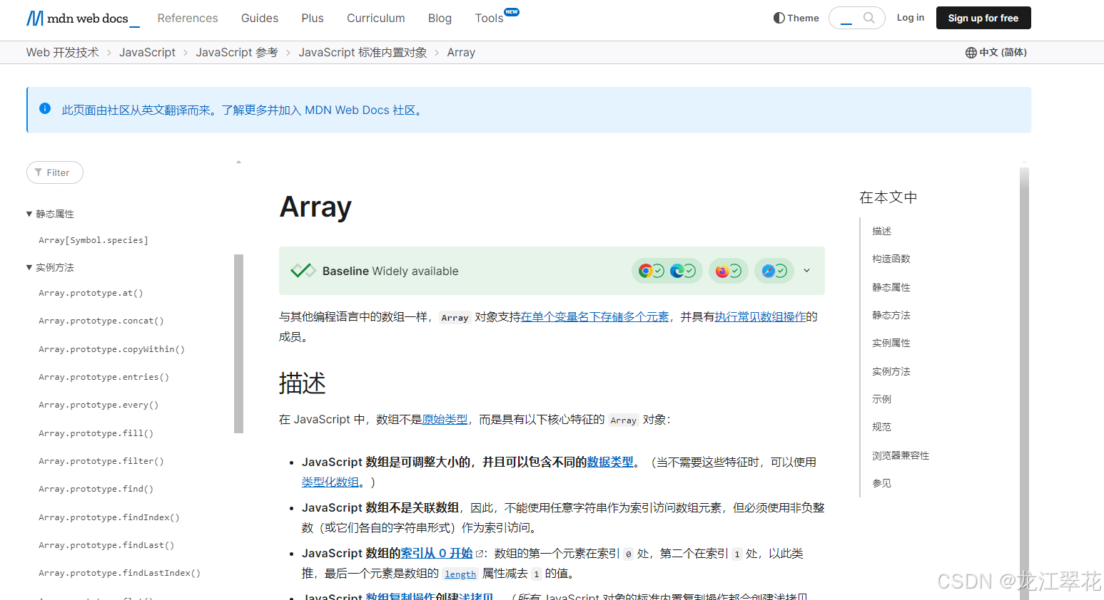 比方说工作中经常遇到数组和字符串的几个方法,里面的参数和返回值,我就经常忘,就可以去上边找