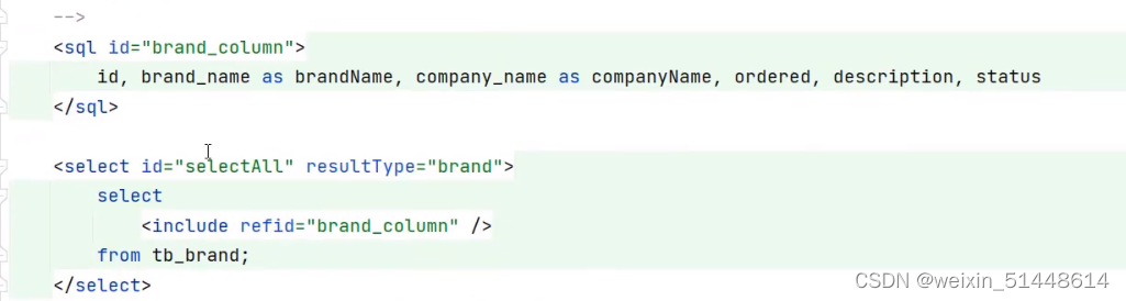 与传统的mybatis开发进行对比 哎mycofig.xml文件里 更加简单 mybatis核心配置文件 下面进行Mybatis环境准备的案例 1.第一步 2.第二步 3.第三步 在这里插入图片描述 4.IDEA插件里面下载mybatisX 在查询数据时,可以用起别名的方式来进行: (经典白学!)因为下面可以用 resultmap 参数占位符: 下面学习条件查询 条件查询有3种 2.对象参数 3.Map集合 写在where里面 最终用的动态查询就是这种(前面动态白雪!) 单条件动态查询