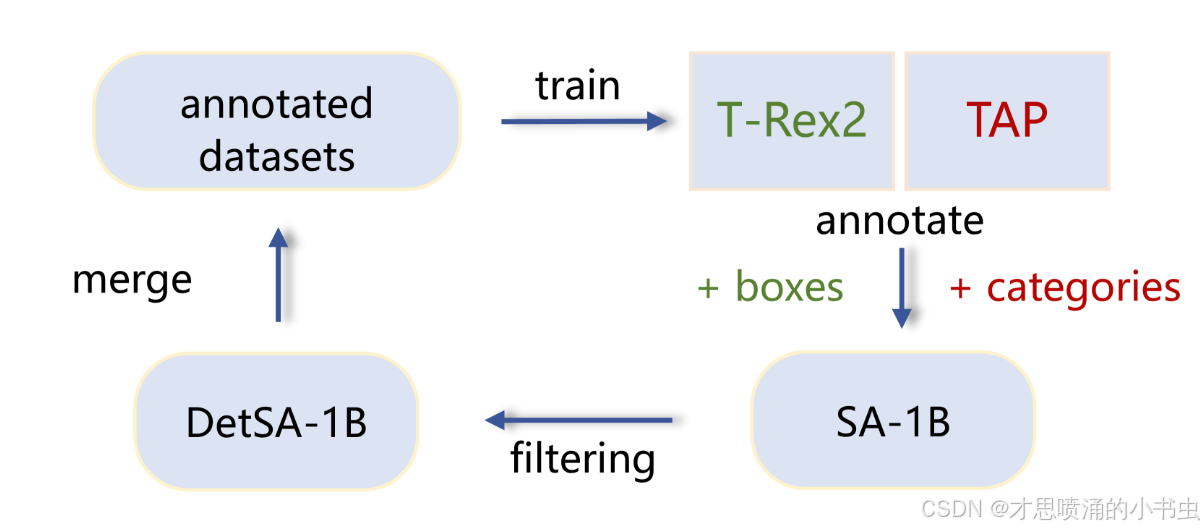 (3)数据引擎优化:在SA-1B等大型数据集中,物体分类的准确性需要提高,以增强视觉提示检测训练数据的质量。