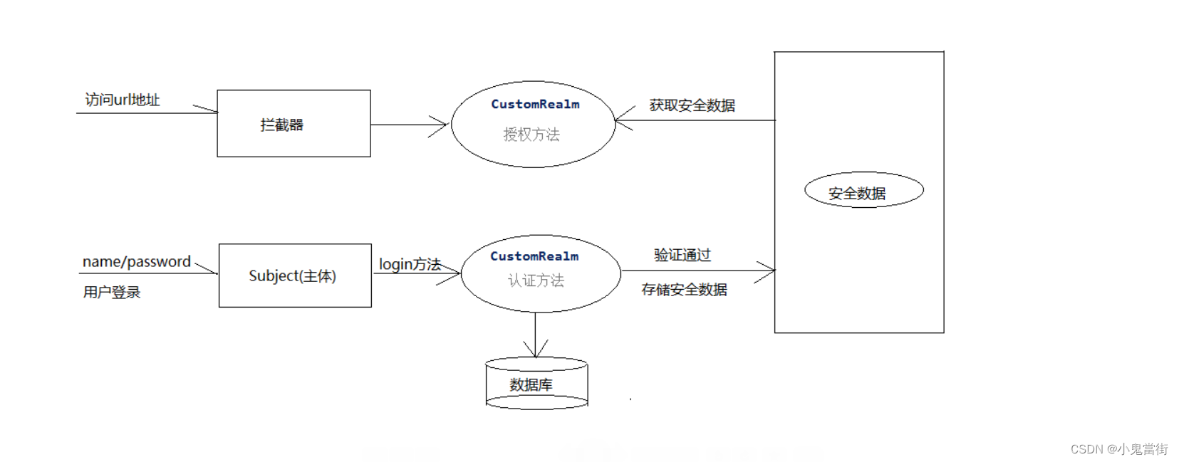 - Realm:可以有1个或多个Realm,可以认为是安全实体数据源,即用于获取安全实体的;可以是JDBC实现,也可以是LDAP实现,或者内存实现等等;由用户提供;注意:Shiro不知道你的用户/权限存储在哪及以何种格式存储;所以我们一般在应用中都需要实现自己的Realm;