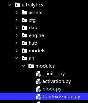 复制下面的代码,进入ultralytics/nn/modules到该目录下,创建一个py文件粘贴进去,名为ContextGuided.py
