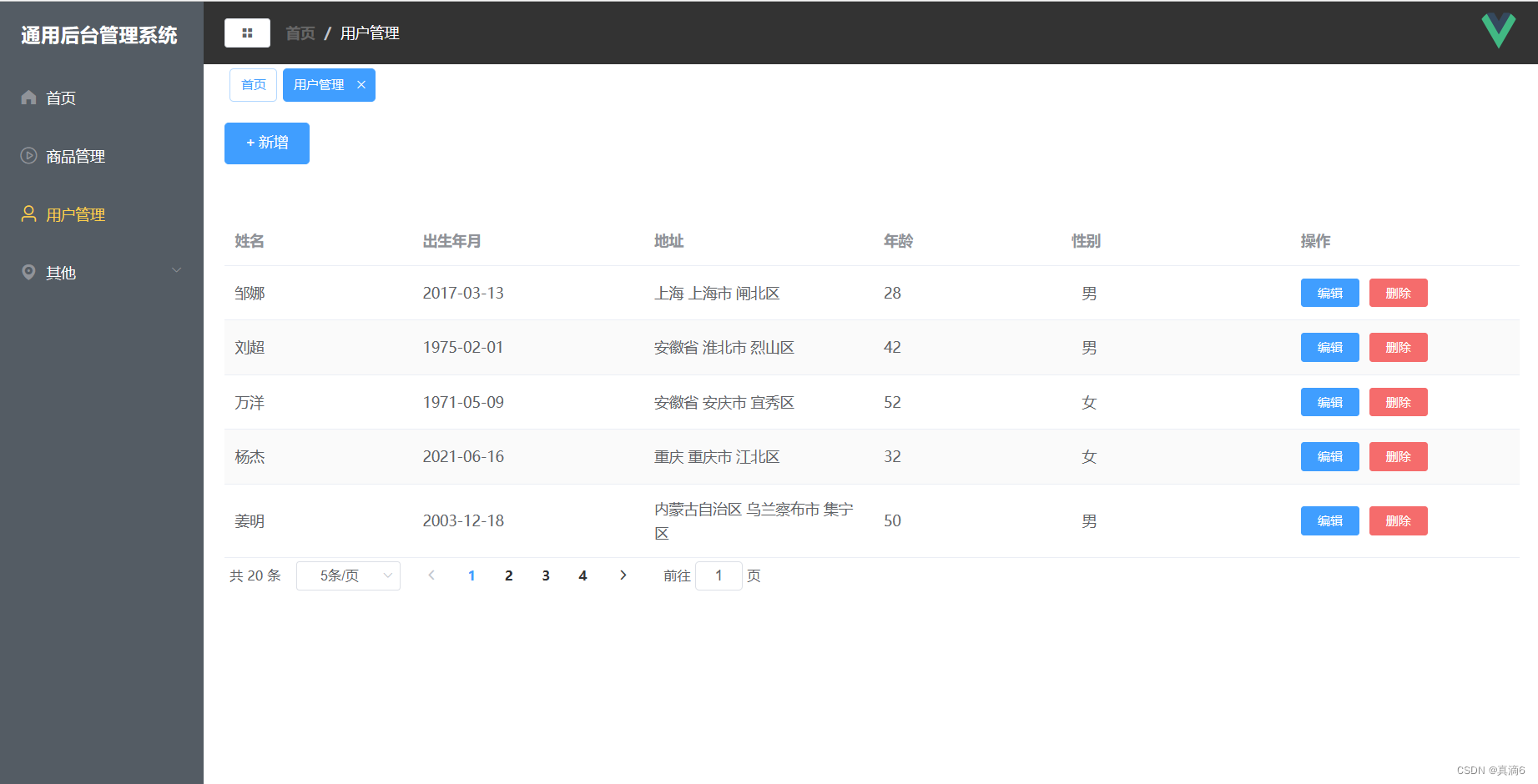 使用mock 提供数据,并用Element 表格进行数据渲染 ,可对数据进行增删改查。