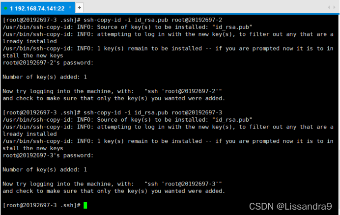 两个namenode节点互相免密钥(本例中20192697-2,和-3互相免密钥)