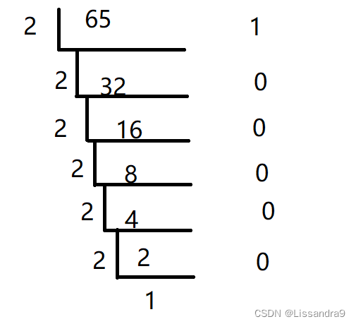 =(1*2^6+1*2^0)=(65)10----此处的10是一个下标代表是一个十进制数