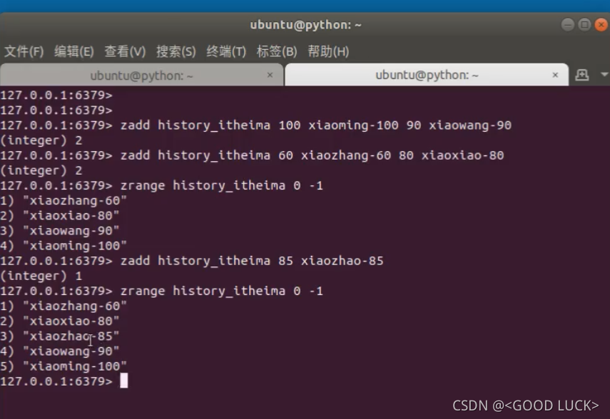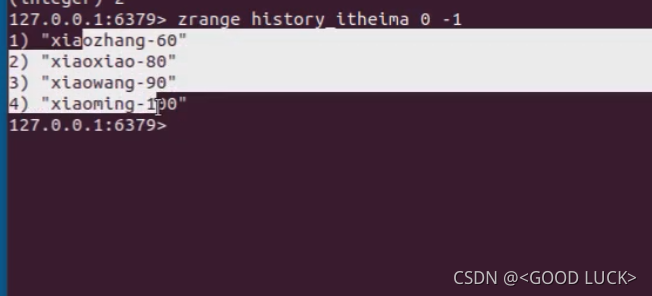 使用zrange 来获取有序列表.