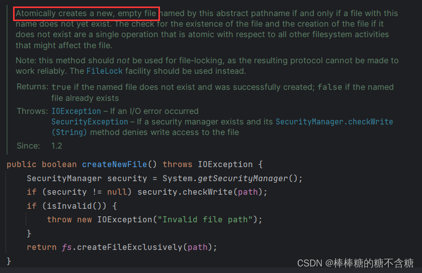 Atomically创建一个新的空文件,该文件由该抽象路径名命名,当且仅当具有该名称的文件还不存在时。对于可能影响文件的所有其他文件系统活动,检查文件是否存在以及如果文件不存在则创建文件是一个原子操作。