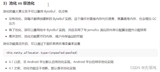 PooledUnsafeDirectByteBuf :直接内存 PooledUnsafeHeapByteBuf :堆内存
