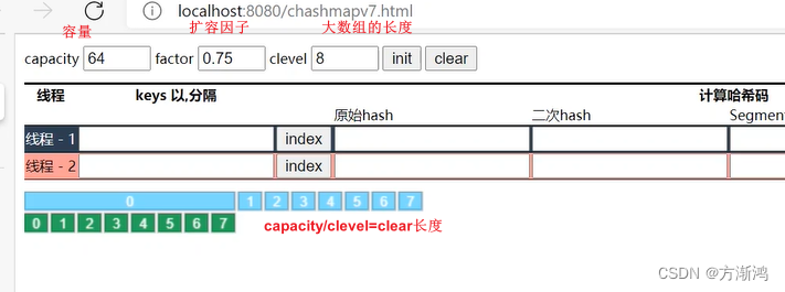 - 之后扩容clear的容量,且扩容只扩容自己那个Segment数组