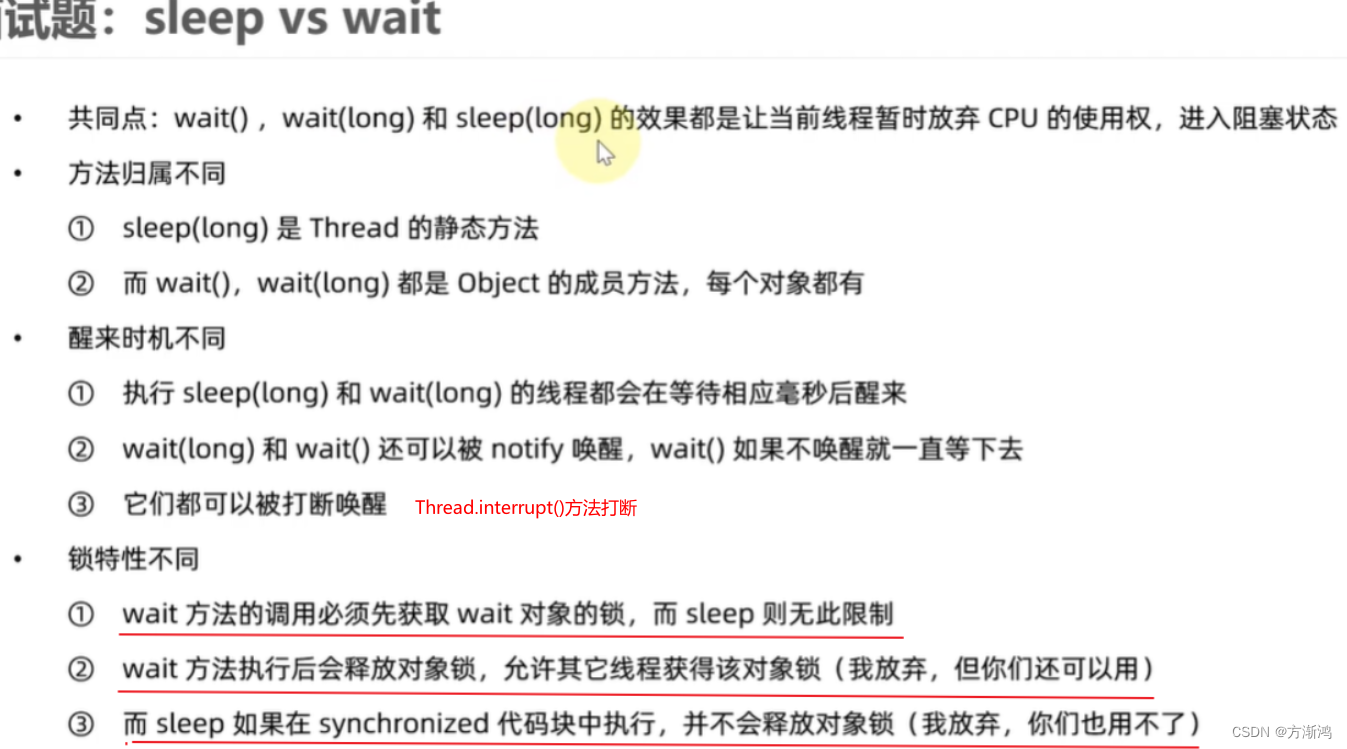 - 他们都可以被interruot()方法打断