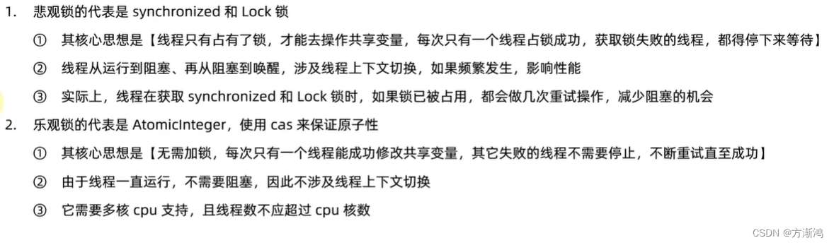 - 乐观锁的代表是Atomiclnteger, 使用cas来保证原子性,底层使用的是Unsafe这个类,