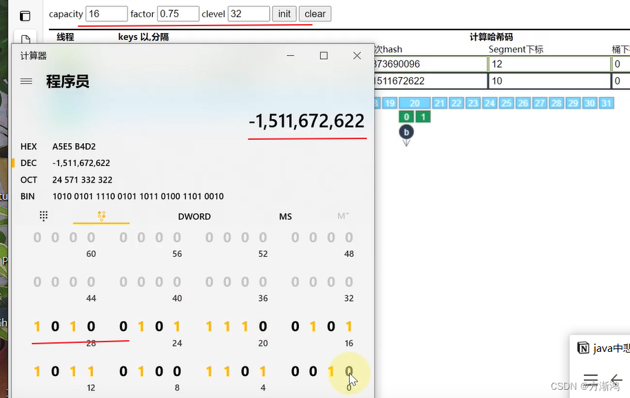 所以Segment索引=二次hash的值转换二进制后的高5位,得出的结果是10100,转换为10进制是20,所以Segment索引就是20,clear的索引是看最低位的是多少