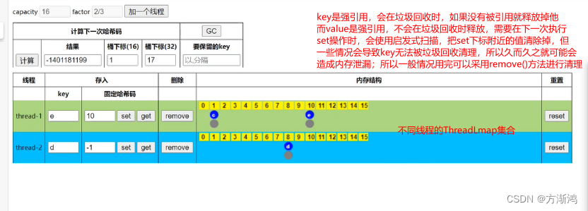 - 一句话理解ThreadLocal,threadlocl是作为当前线程中属性ThreadLocalMap集合中的某一个Entry的key值Entry(threadlocl,value),虽然不同的线程之间threadlocal这个key值是一样,但是不同的线程所拥有的ThreadLocalMap是独一无二的,也就是不同的线程间同一个ThreadLocal(key)对应存储的值(value)不一样,从而到达了线程间变量隔离的目的,但是在同一个线程中这个value变量地址是一样的。