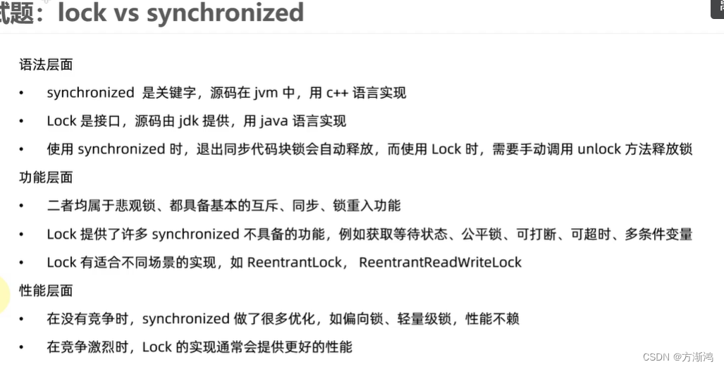 - lock vs synchronized