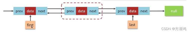 当需要获取前一个结点时,只需要调用prev就行,调取后一个结点则只需要调用next指针就行