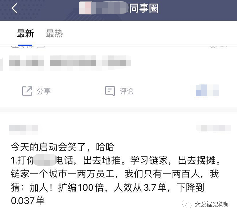 这是贝壳的竞争对手,某个神奇的公司,地推团队的领导给下达的任务。这作业抄的,没谱了。单纯看到链家做到的结果,完全不考虑链家员工背后有多少能力支撑,就直接给自己团队也下达一样的目标,这种领导,简直愚蠢之极!