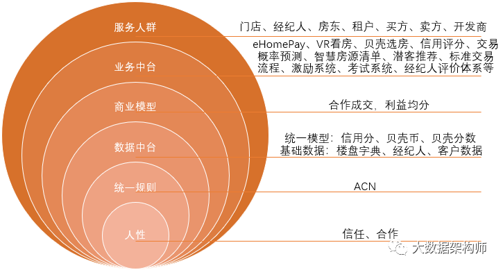 不过我爱我家走的这条路总是对的,从服务人群(门店、经纪人、租户、买卖方、开发商),业务中台(个性化推荐、二手经纪服务系统、VR看房、一键换装等),数据中台(信用分、地址库),统一规则(ACN)等方面都做到了。很期待我爱我家的作业能抄到什么程度。
