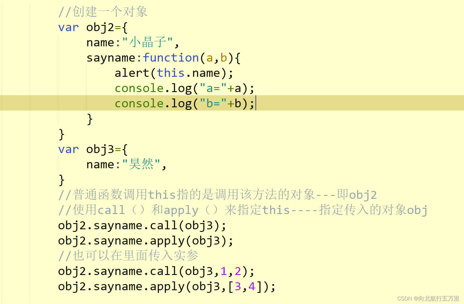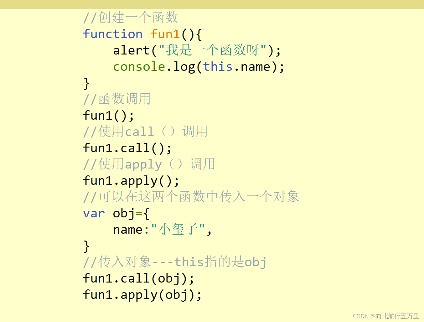 -并且可以通过第一个实参来指定函数中this(在调用call()和apply()可以将一个对象指定为第一个参数,此时这个对象将会称为函数执行时的this), 而函数对象(),this为window,即以函数的形式调用时,this永远都是window
