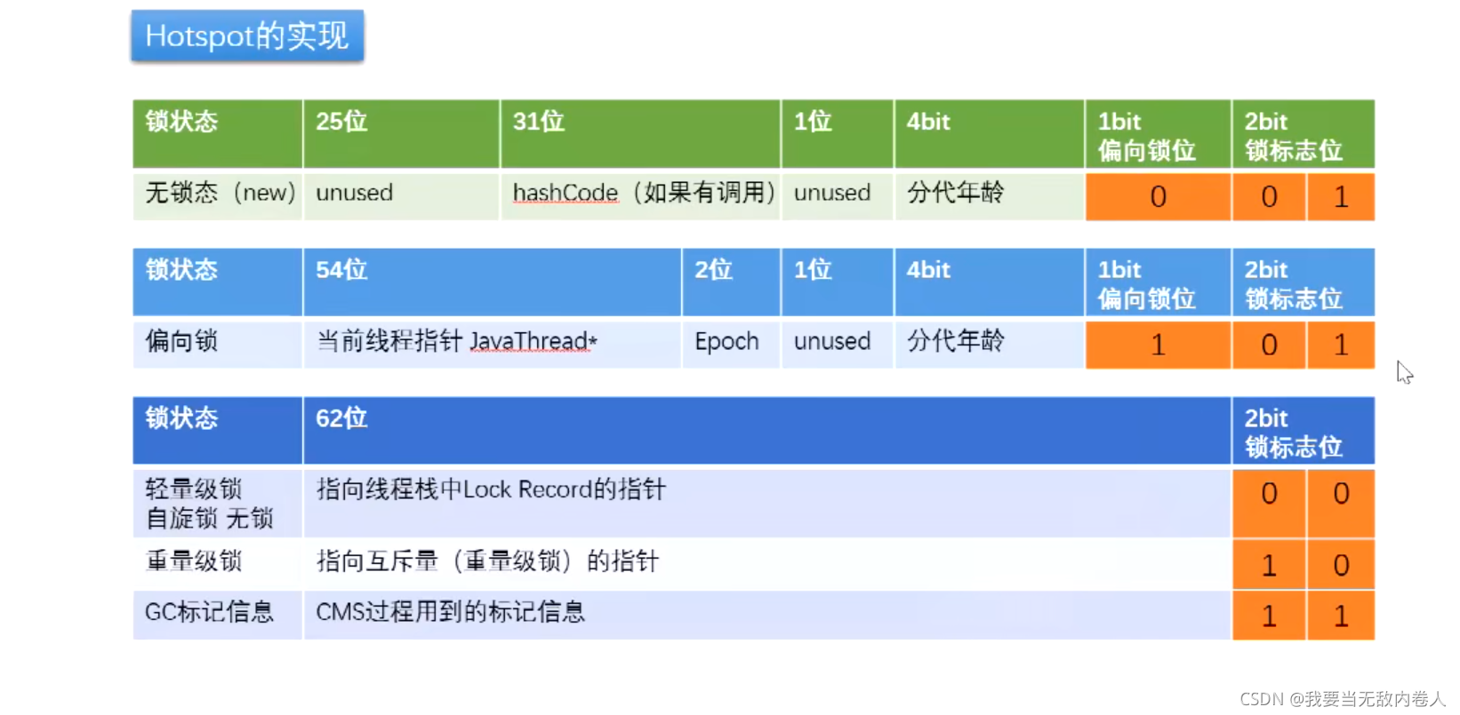 这里呢,是讲解的锁升级所以就重点看一下后两位,锁状态的判断就是看后两位的状态,无锁和偏向锁是看倒数第三位的状态